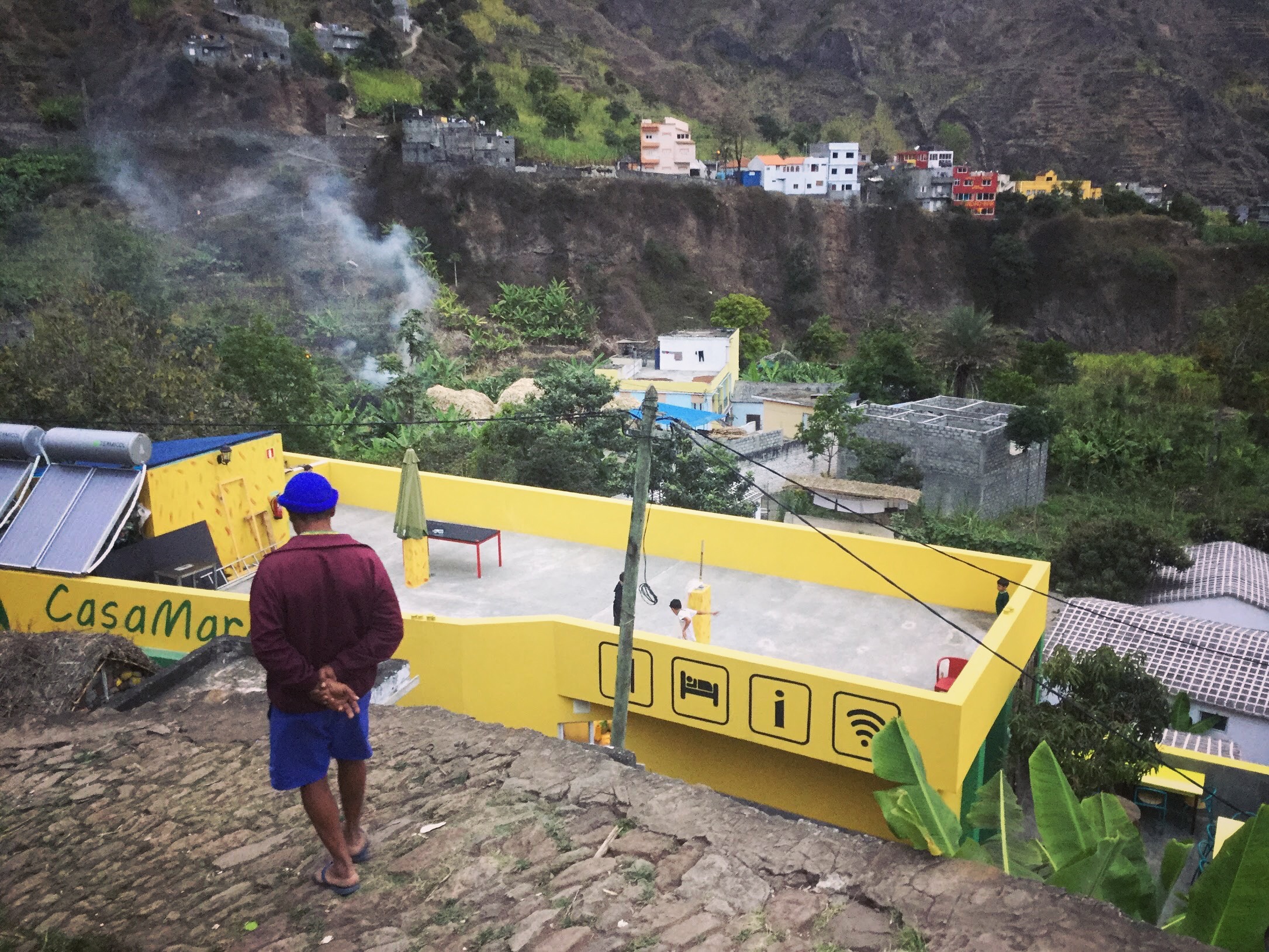 After an entertaining, extended and extreme banter and belly laugh exchange (the kind developed after attaining a familiarity that requires not one word be spoken in order to be understood) between Georgina and her friends at our new found shelter, we ourselves were introduced and welcomed as family — a sentiment now permanently engrained in our hearts as the Cabo Verdean way. We ascended to the evening’s lodging and connecting rooftop perch that would reveal itself to be an overlook into one of the most sweeping, lush and dramatically karst landscapes imaginable.