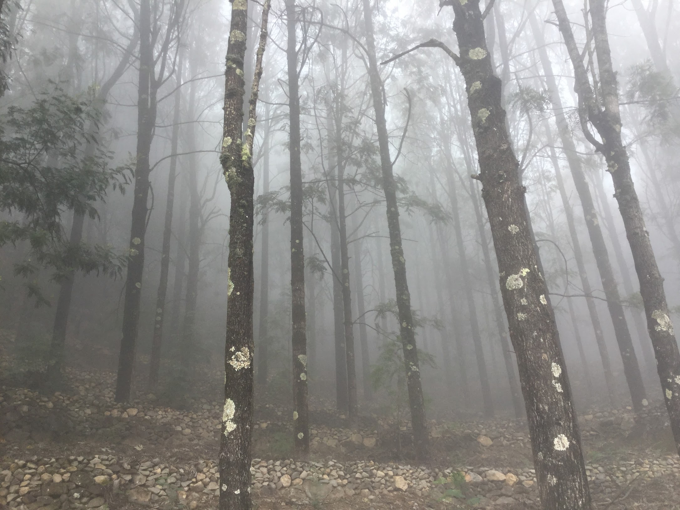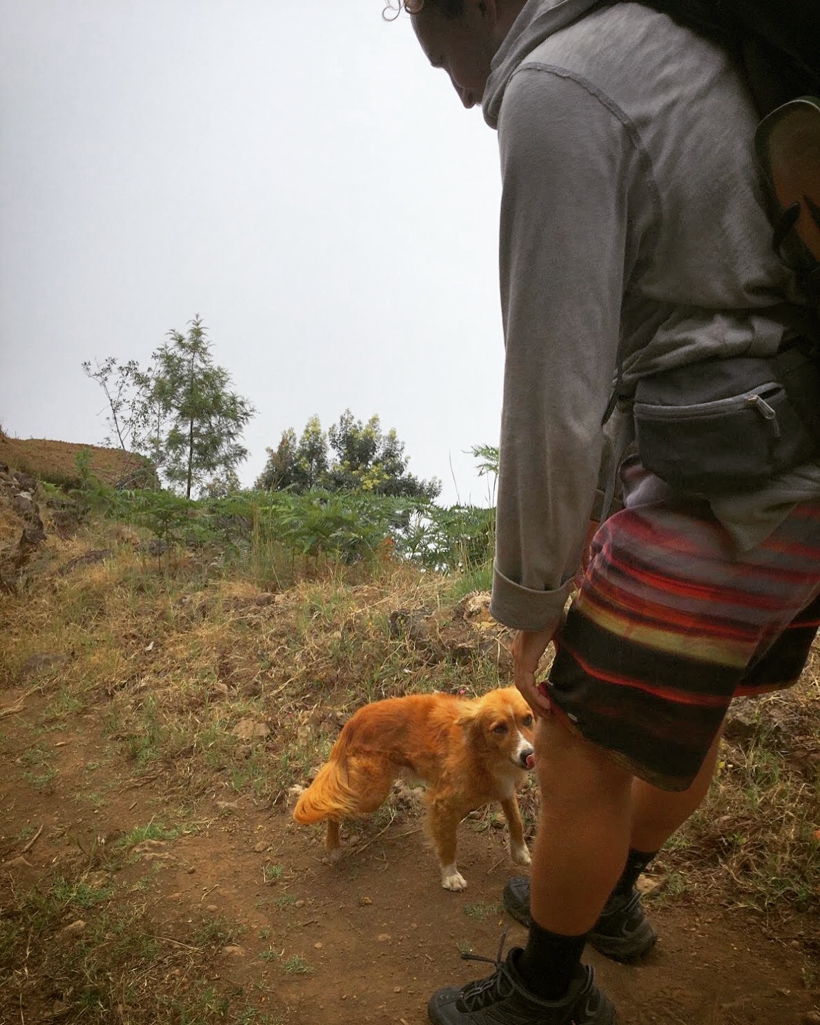Forging ahead (as we do) on our trek with a load of uncertainty that was outmatched only by curiosity, we disappeared into the fog. The rambling but level trail led us through a forest of some kind of pine, to goats and the first precipitation we had witnessed in nearly three weeks — the entirety of our time on the islands of endless summer. We stopped beneath the tree that provided the slow, intermittent dripping to take a moment to silently allow for our new perspectives and appreciations for rainfall to sink into our hearts and minds as the drops sank into our skin.